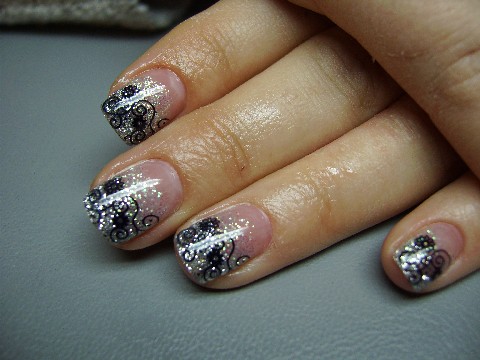 Schwarzes French mit Marmorierung in Bordeaux-silber